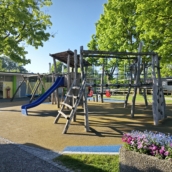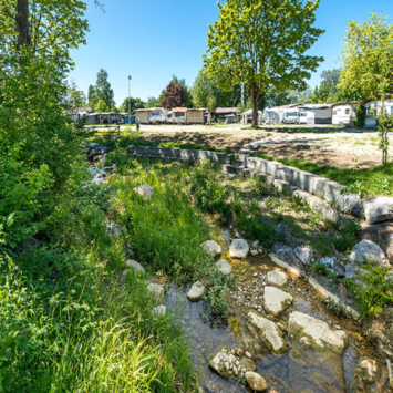 Barrierefreiheit ist uns ein wichtiges Anliegen. Besucher mit Beeinträchtigungen schätzen die ebenen Flächen und die grosszügig gestalteten Sanitärgebäude sowie Einkaufs- und Aufenthaltsmöglichkeiten. Ein vorbildlich renaturierter Bachlauf durchzieht unseren Campingplatz und der zentrale Spielbereich und Freisitz mit Grillpavillon laden zum Verweilen ein.